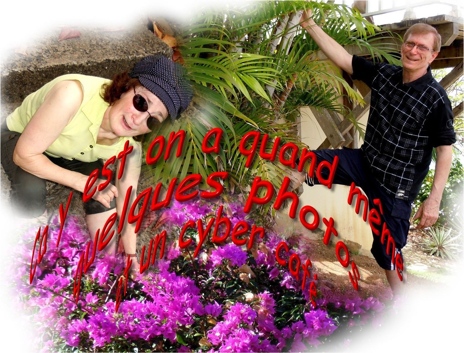 Grace à une autre connexion en cyber base, j'ai pu commencer à vous envoyer une partie des photos, mais la transmission est toujours longue et difficile. Il est affiché ici que le cable sous marin a été endommagé et que les connexions doivent transiter par les anciens procédés moins performants. Donc puisque TOUT s'en mêle, j'ai décidé que je reprendrais les autres pages au retour Bisous à TOUS et Merci à Tous ceux qui nous ont laissé des messages.